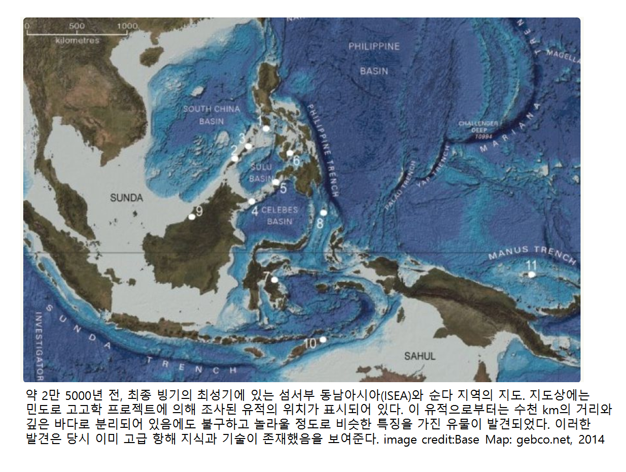 구석기 시대에 존재했을 것으로 여겨지는 기술 수준만으로는, 이 지역에 이주하기 위해 필요한 고도의 외양 항해 능력을 설명하기 어렵기 때문이다. 그러나 이 통설을 뒤집을 수도 있는 연구 결과가 발표됐다. 필리핀을 중심으로 한 동남아시아 섬 지역의 고대인이 기존 예상보다 훨씬 이른 시기부터 뛰어난 항해 기술을 보유했을 가능성이 제시된 것이다.
